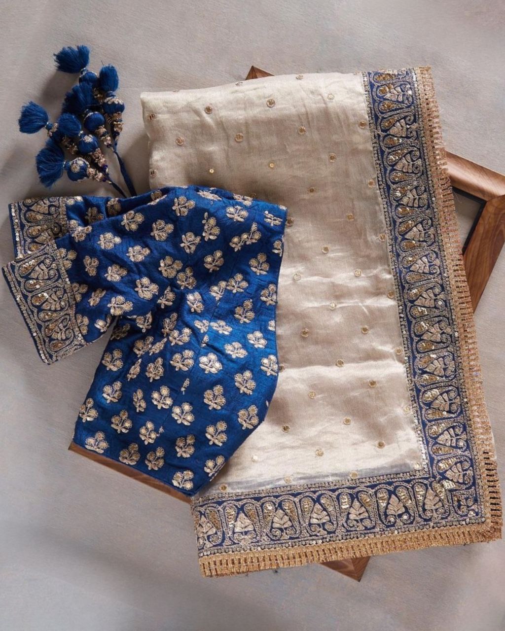 Be the first to review “Cream Organza Silk Sequence Work Saree With Blouse” Cancel reply